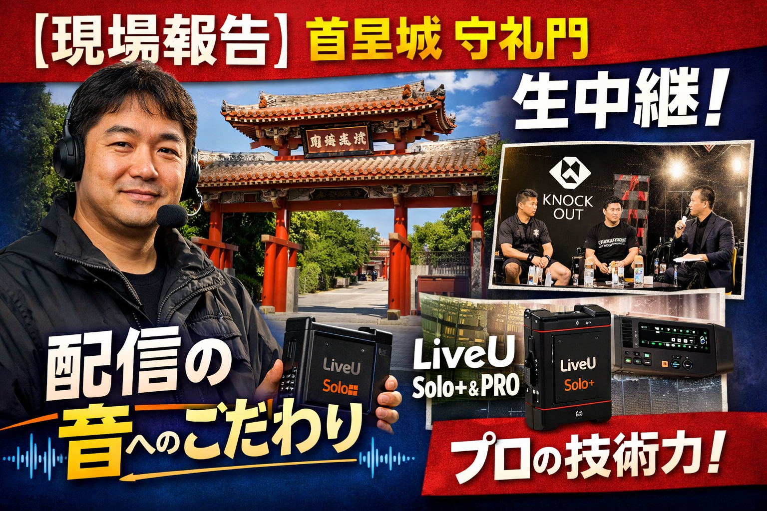 クリックボイス沖縄では、この歴史的な場所からのライブ配信を担当! 屋外、かつ世界遺産という「ネット環境ゼロ」の過酷な条件下でしたが、LiveU Solo+を投入し、複数のモバイル回線を束ねることで、2箇所への同時中継を無事に完遂いたしました。