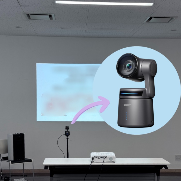 2. 驚きの「超小型PTZカメラ」 今回は私のワンオペ配信でしたが、使用したのはプロ仕様の超小型リモートカメラ(PTZカメラ)。 写真を見ていただけるとわかりますが、プロジェクターの前や演者の目の前に置いても全く邪魔になりません! クライアント様からも「こんなに小さいカメラで撮れるの!?」と驚きと称賛の声をいただきました🎥✨
